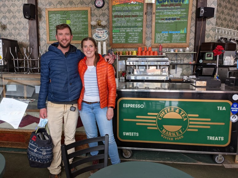 Skylr grew up in Fraser, Colorado and Laura grew up in Massachusetts. They met in Boulder, Colorado, at a restaurant they both worked at in 2011 and have been together ever since. One of the first conversations they ever had was about how they both had dreams of owning their own café/restaurant. Skylr talked about his Green Chile Recipe and all the delicious food he would make and Laura bragged about her tea pot collection. Over the past ten years, Laura and Skylr have traveled in Southeast Asia for six months, done a fix and flip, completed a 17 day bike tour, lived in a van in New Zealand for 3 months, canoed down the Colorado River, and traveled as much as possible. They got married in Crested Butte, Colorado in August of 2019 and purchased Coffee and Tea Market in May 2021.