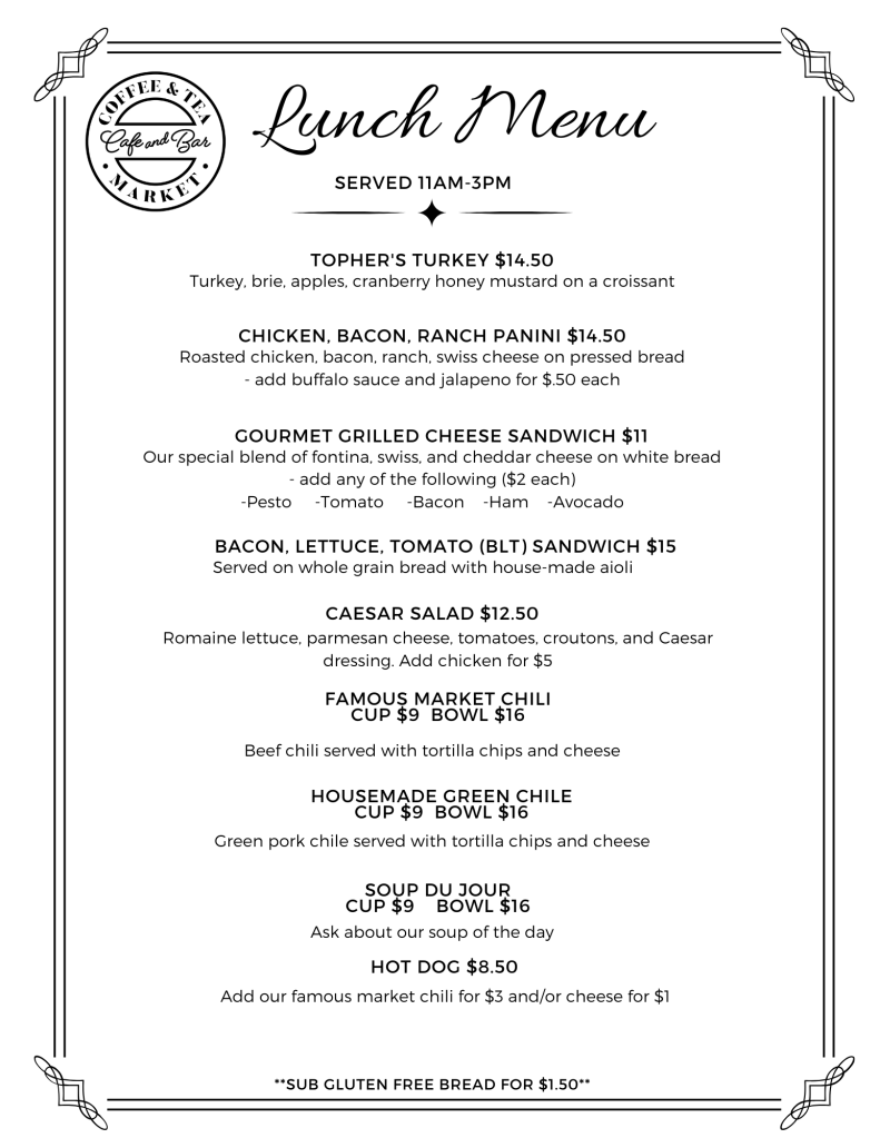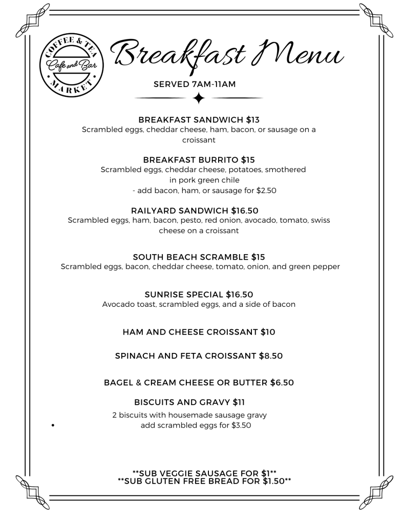 FOOD MENU We also have a vegan scramble available for breakfast and a vegan caesar salad for lunch 🙂